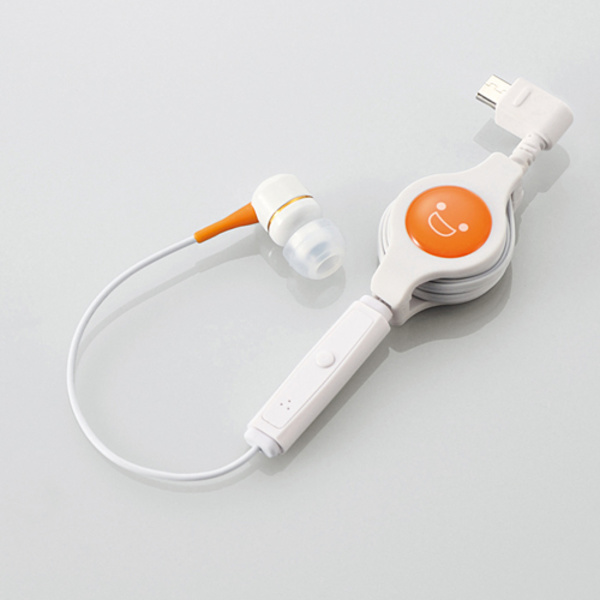 持ち運びや収納に便利なコード巻き取りタイプ!音声入出力対応のmicroUSB端子を持つスマートフォンでハンズフリー通話ができる、片耳タイプの着信応答/通話終了スイッチ付きヘッドホンマイク。