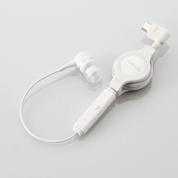 持ち運びや収納に便利なコード巻き取りタイプ!音声入出力対応のmicroUSB端子を持つスマートフォンでハンズフリー通話ができる、片耳タイプの着信応答/通話終了スイッチ付きヘッドホンマイク。