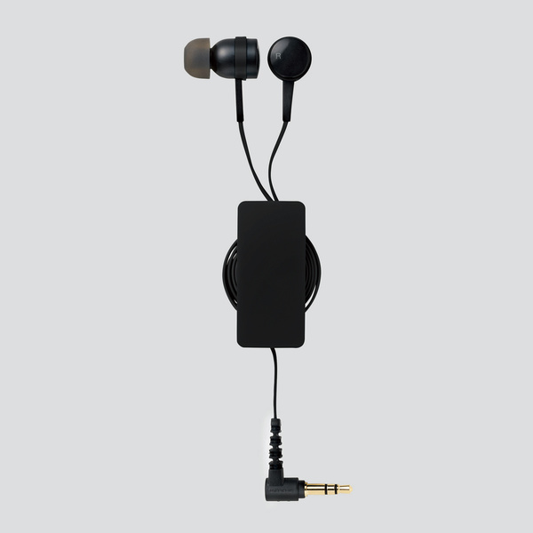 5段階に長さ調節ができる巻取りタイプのステレオヘッドホン。