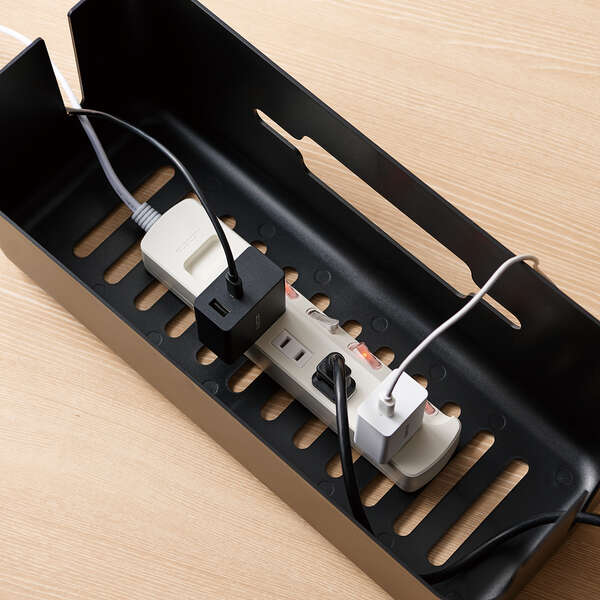 デスクの上のケーブルや端末をスッキリ整理できる、大容量のケーブルボックスです。