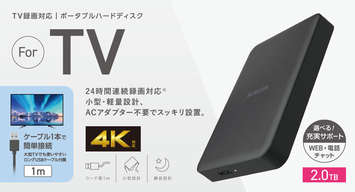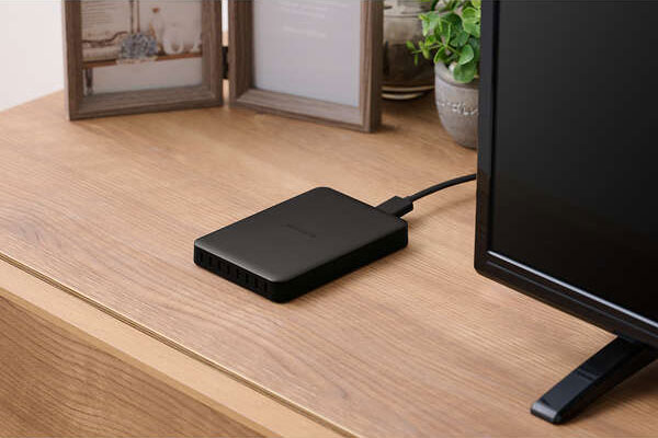 テレビやレコーダーなどの機器に接続し、番組の録画ができるポータブルハードディスクです。