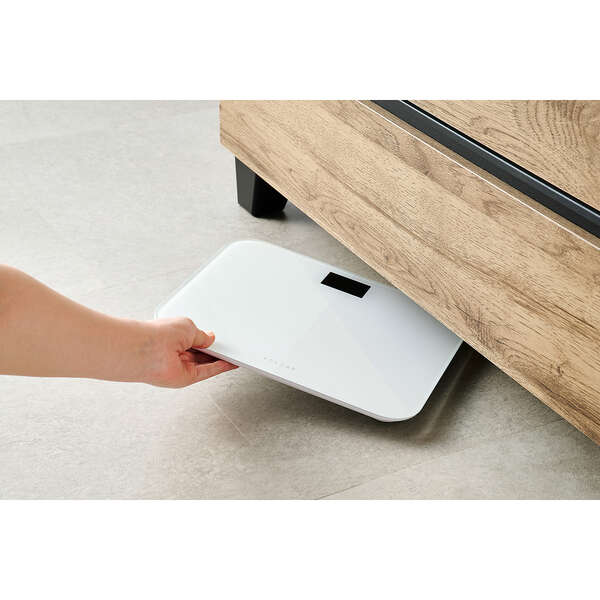毎日の使いやすさにこだわったデザイン。 見やすい液晶画面で、場所をとらないスリム&コンパクト設計のエクリア 体重計。
