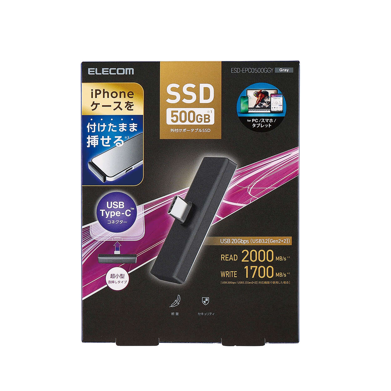 USB Type-C™コネクターを搭載した、超小型直挿しタイプのiPhone向け外付けSSDです。