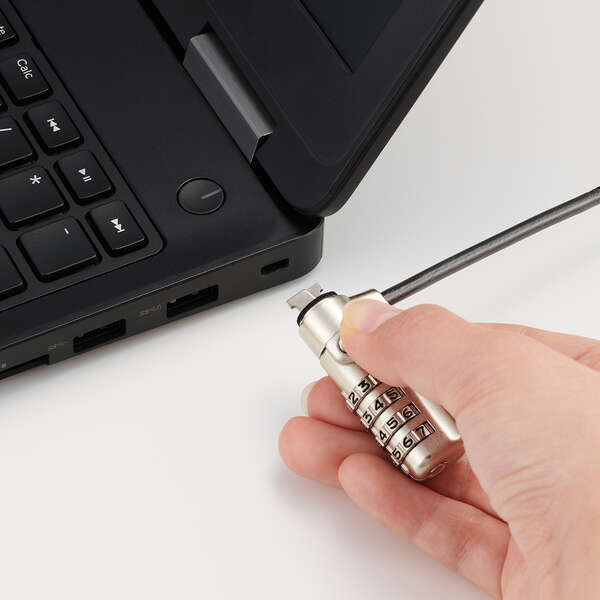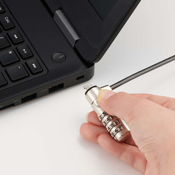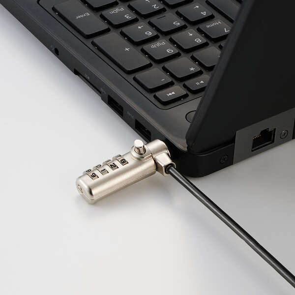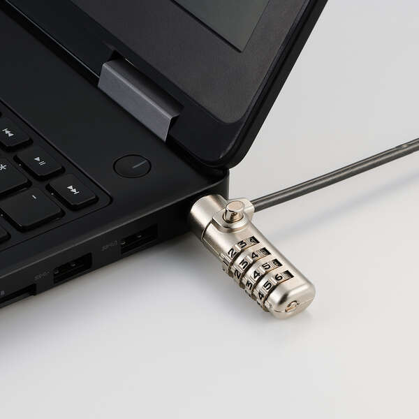 キー不要の4桁ダイヤル、スリムヘッドタイプを採用!薄型ノートパソコン・液晶モニター・タブレットなどを盗難から守るセキュリティワイヤーロックです。