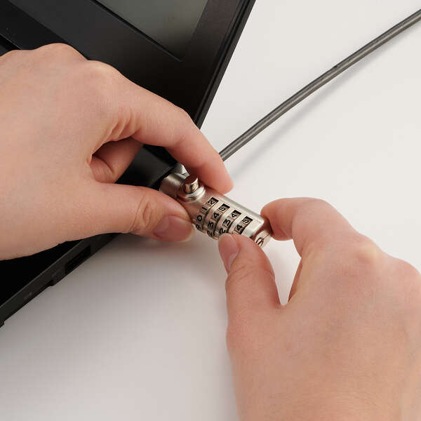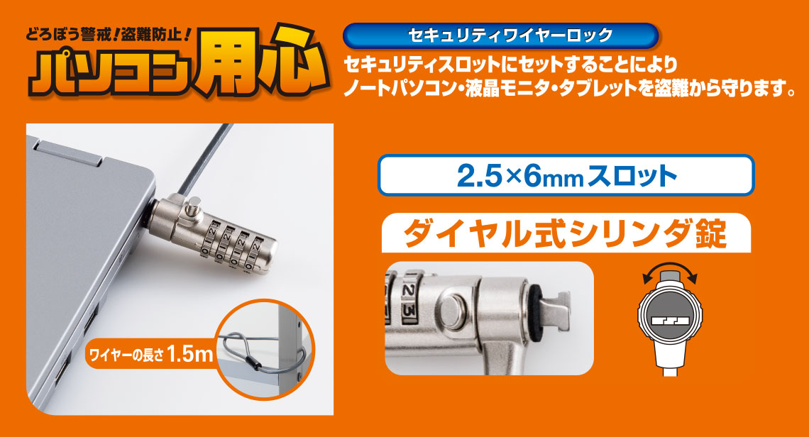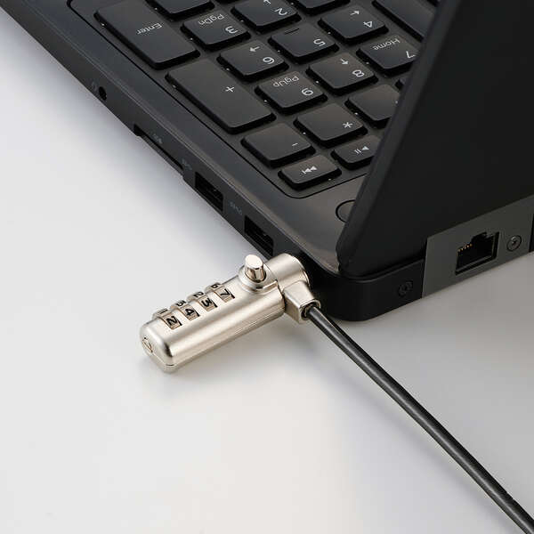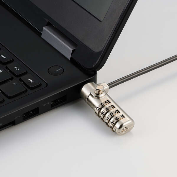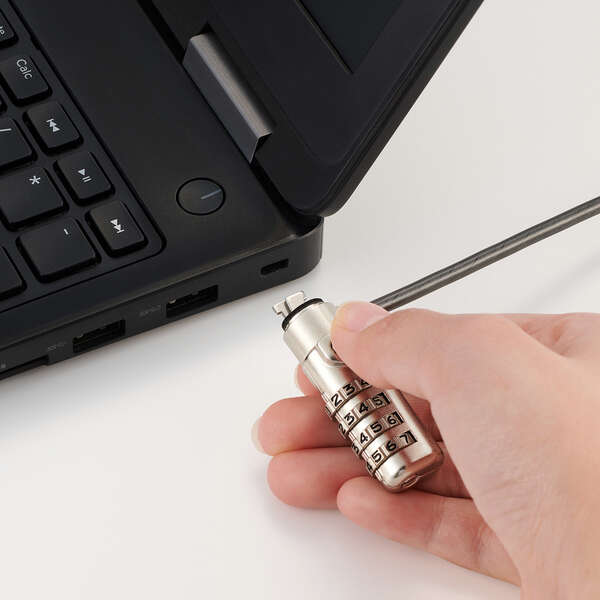 キー不要の4桁ダイヤル、スリムヘッドタイプを採用!薄型ノートパソコン・液晶モニター・タブレットなどを盗難から守るセキュリティワイヤーロックです。