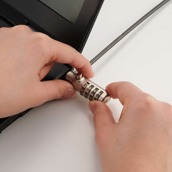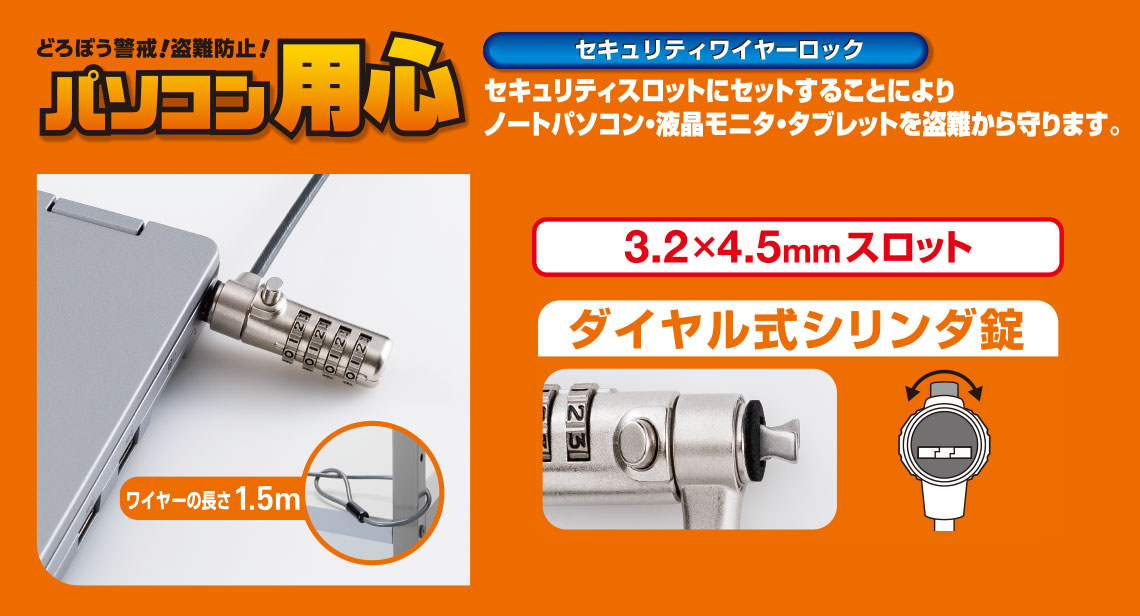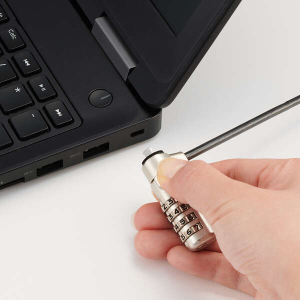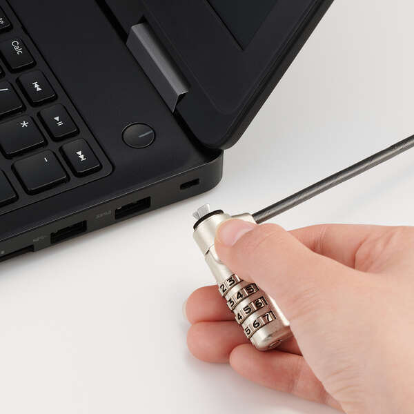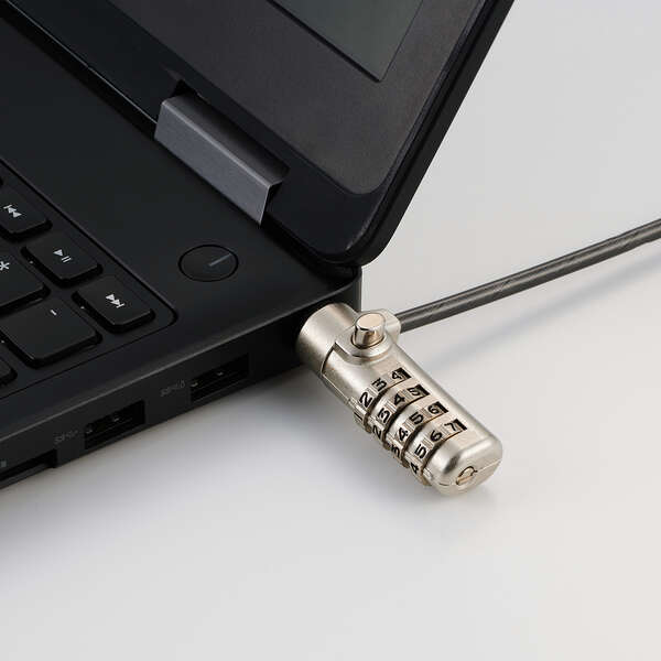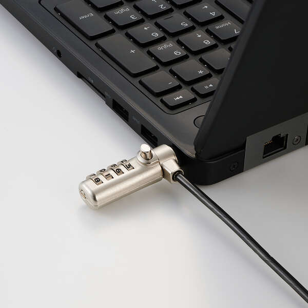キー不要の4桁ダイヤル、スリムヘッドタイプを採用!薄型ノートパソコン・液晶モニター・タブレットなどを盗難から守るセキュリティワイヤーロックです。