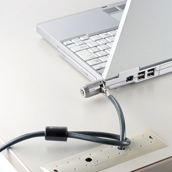 セキュリティスロットに取り付けてパソコンなどを盗難防止!ロックパーツ・専用キー・ワイヤーケーブルがセットになった、セキュリティワイヤーロックセット。