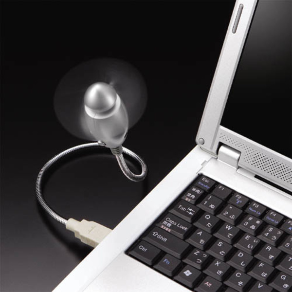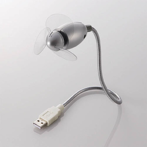 オフィスでも使いやすい落ち着いたカラーのUSB扇風機。USBポートに接続するだけで使用可能。自由に動かせるフレキシブルアーム。便利なOn/Offスイッチ付。