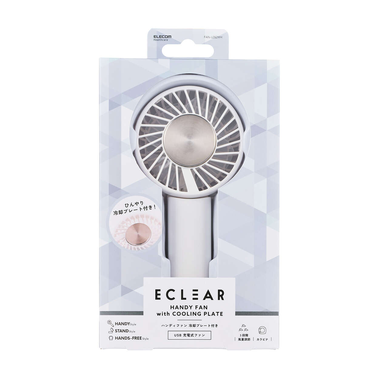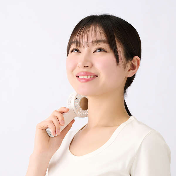 触れてひんやり、瞬間クールダウン。肌で直接涼しさを味わえる、冷却プレート付きハンディファンです。ファンの風とプレートの冷たさで、いつでもどこでもすぐに涼しさを味わえます。首に掛けても卓上ファンとしても使えて、シーンに合わせて活躍します。