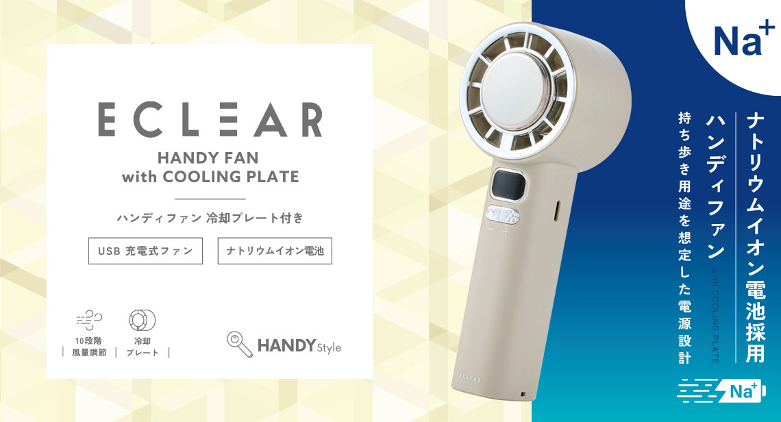 地球にも人にも優しいナトリウムイオン電池を採用。長寿命で、安心して使える冷却プレート付きハンディファンです。ファンの風とプレートの冷たさで、いつでもどこでも瞬間クールダウン。充電・残量がひと目で分かるお知らせ表示付きなので、外出前にチェックできて便利です。