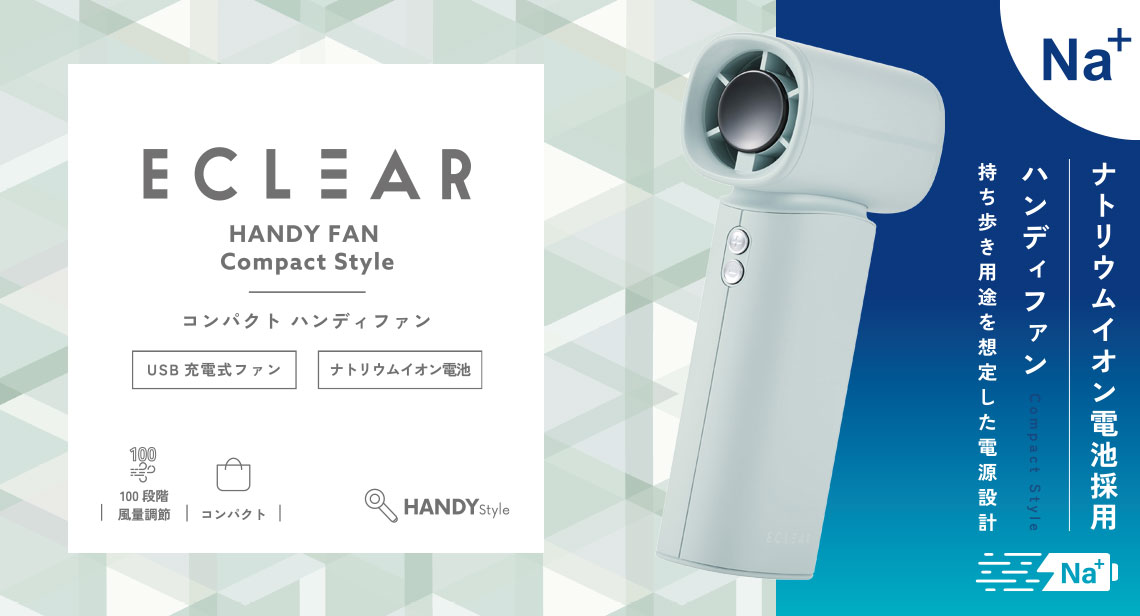 地球にも人にも優しいナトリウムイオン電池を採用。長寿命で、安心して使えるコンパクトハンディファンです。小さいながら、汗ばむ季節もサッと涼しくリフレッシュ。充電・残量がひと目で分かるお知らせ表示付きなので、外出前にチェックできて便利です。