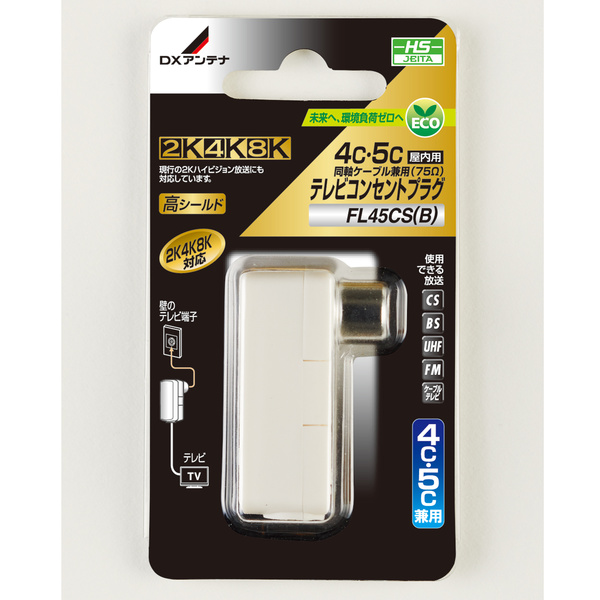 テレビコンセントから電波をワンタッチで取り出す同軸ケーブル用(75Ω)プラグです。既存の2K放送から4K・8K(3224MHz)放送の周波数帯域に対応しています。簡単な加工で誰でも簡単に接続できます。4C、5Cケーブルどちらにも適合する兼用タイプです。心線の接続状態が確認できる窓付なので確実に組立できます。他の電波との干渉を防ぐ高シールド構造です。ブリスターパック商品。 本体色ホワイト。