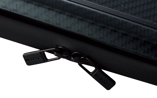 開閉しやすいダブルファスナータイプで、ファスナー生地部分からの水濡れを防ぐ止水ファスナーを採用しています。