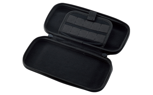 ポーチを開けた際にNintendo Switch Liteの落下防止に役立つストッパー機能付のソフト収納ポケット付です。(ソフト10枚収納可能)