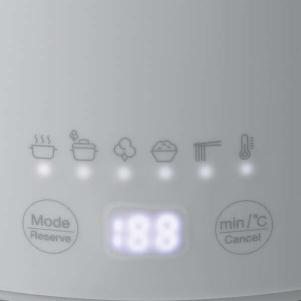 [めん]モード:麺をゆでてスープと軽く煮込む、うどんやラーメンなどに。麺の種類に合わせて適切なゆで時間で調理できます。