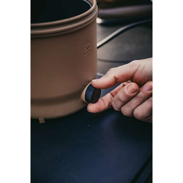 滑り止めのローレット加工を施した金属製の操作ダイヤルや、ふたを皿として使える仕様など、細部までこだわったデザインでアウトドアギアの所有欲を満たします。 キャンプシーンに合わせやすい2色をラインアップ。
