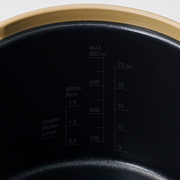 内釜には調理用目盛り(蒸し・炊飯)と容量目盛りを刻印しています。
