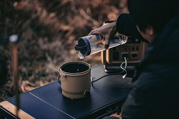 省電力仕様のため、さまざまなポータブル電源に対応できます。 キャンプや車中泊でも使いやすいデザインです。 ガスや焚き火、炭火での調理は一酸化炭素中毒や火災の危険がありますが、“COOKER-1”は一酸化炭素が発生せず火も使いません。 テント内や車内でも安全に調理でき、小さなお子様やペットがいる場合も安心です。