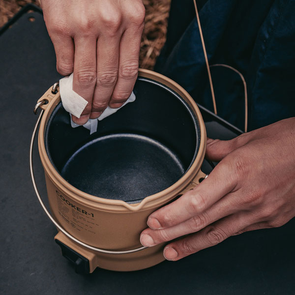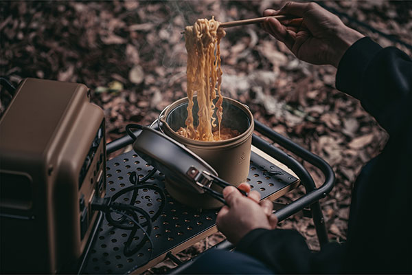 アウトドア用に開発された“COOKER-1”は、収納ケースが付属していて持ち運びがしやすく、屋外でも扱いやすい設計です。