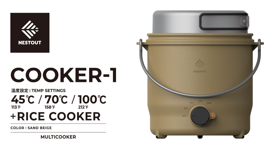 アウトドアに特化したブランド NESTOUT(ネストアウト)の電気調理器“COOKER-1”です。