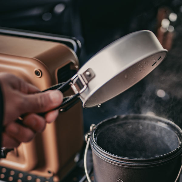 滑り止めのローレット加工を施した金属製の操作ダイヤルや、ふたを皿として使える仕様など、細部までこだわったデザインでアウトドアギアの所有欲を満たします。 キャンプシーンに合わせやすい2色をラインアップ。
