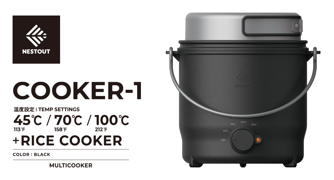 アウトドアに特化したブランド NESTOUT(ネストアウト)の電気調理器“COOKER-1”です。