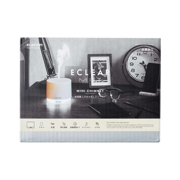 ナイトランプ機能搭載のUSBパーソナル加湿器・アロマディフューザー“エクリア ミスト”です。
