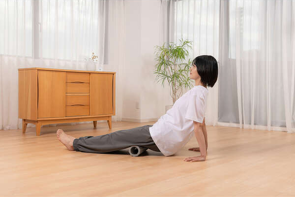 お尻をローラーにのせて、ゆっくり転がしてください。表面の程よい凹凸が、筋肉のコリをじんわりほぐします。