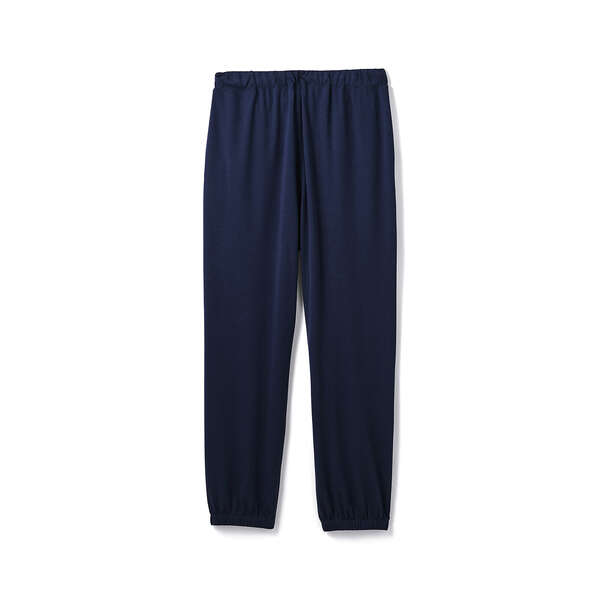 リラックス感のある程よいゆとりのシルエットで、裾にかけてすっきり見えるテーパードスタイルのロングパンツです。裾はくるぶしまでしっかりカバーしてまくり上がりにくい設計なので、足首からの冷えを防ぎます。