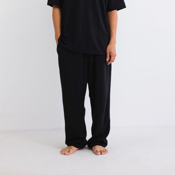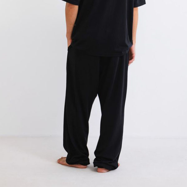 リラックス感のある程よいゆとりのシルエットで、裾にかけてすっきり見えるテーパードスタイルのロングパンツです。裾はくるぶしまでしっかりカバーしてまくり上がりにくい設計なので、足首からの冷えを防ぎます。
