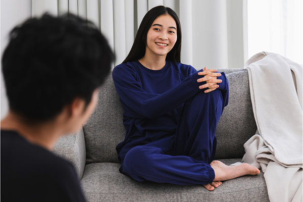誰でも気軽に着られる、シンプルで洗練されたノームコアデザインです。どんなスタイルにも自然にマッチするので、パジャマとしてはもちろん、テレワークなど日中でも着られます。