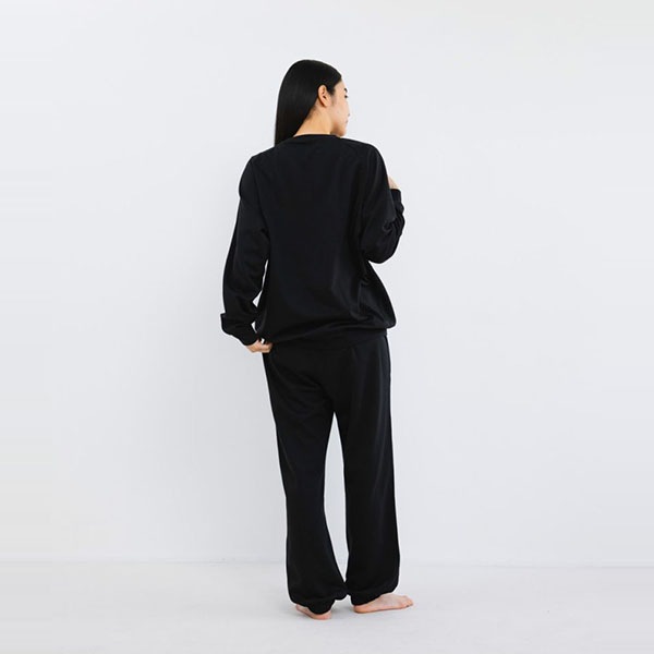 誰でも気軽に着られる、シンプルで洗練されたノームコアデザインです。どんなスタイルにも自然にマッチするので、パジャマとしてはもちろん、テレワークなど日中でも着られます。