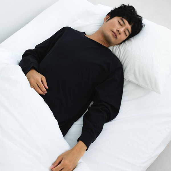 肩周りの圧迫感がなく肩や腕が動かしやすいラグランスリーブを採用。肩幅の広い人や筋肉質の人でも動きやすく、寝返りもスムーズです。