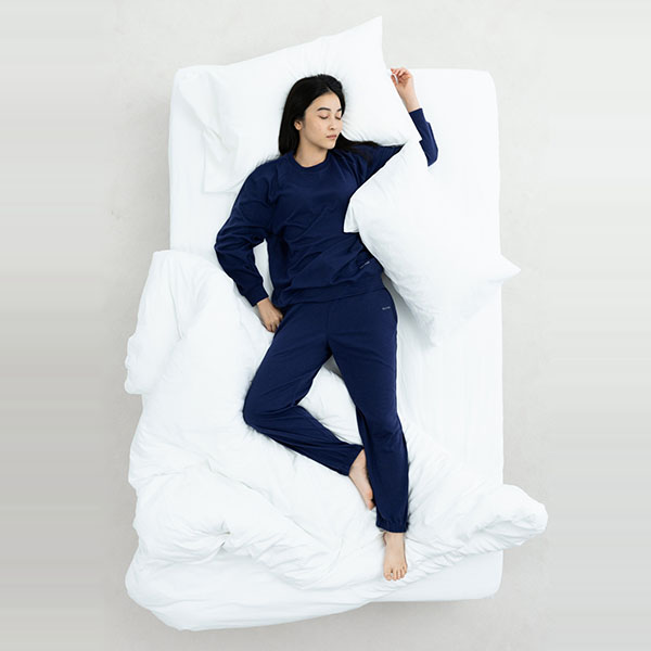 肩周りの圧迫感がなく肩や腕が動かしやすいラグランスリーブを採用。肩幅の広い人や筋肉質の人でも動きやすく、寝返りもスムーズです。