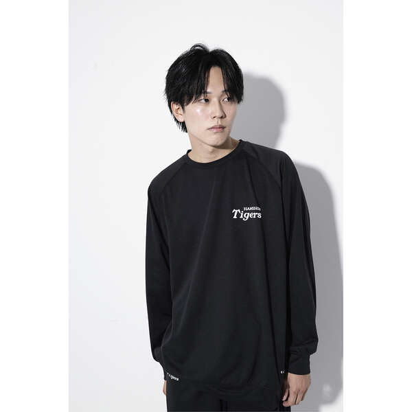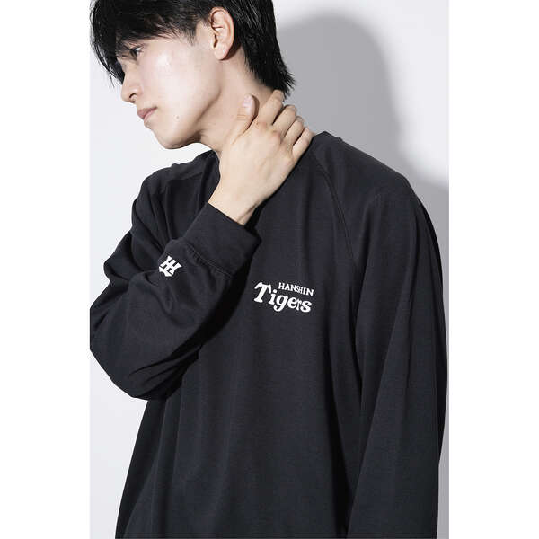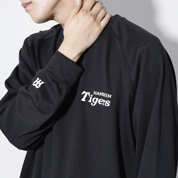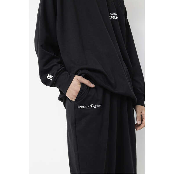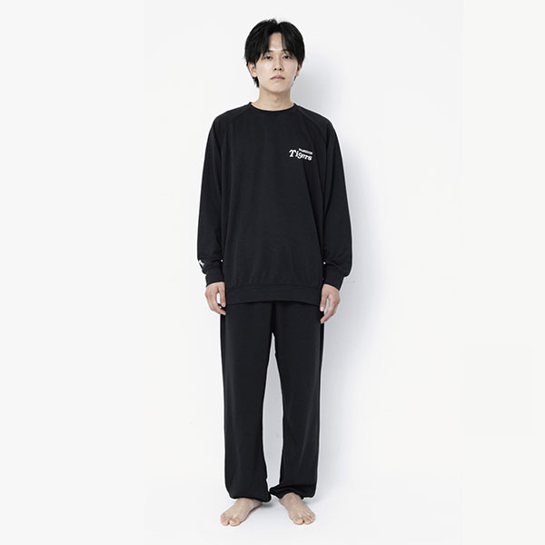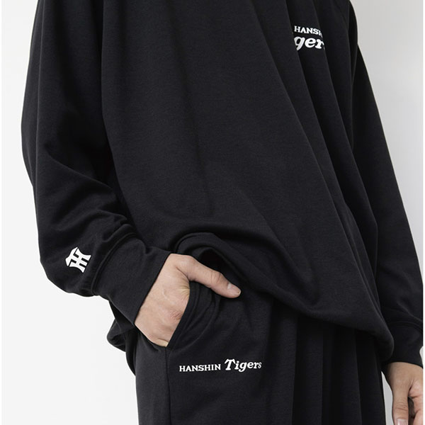 いつもの時間に、タイガースをそっと。トップスの左胸や袖、パンツにさりげなく阪神タイガース公式ロゴをあしらったシンプルデザイン。普段使いしやすく、ギフトにもおすすめです。