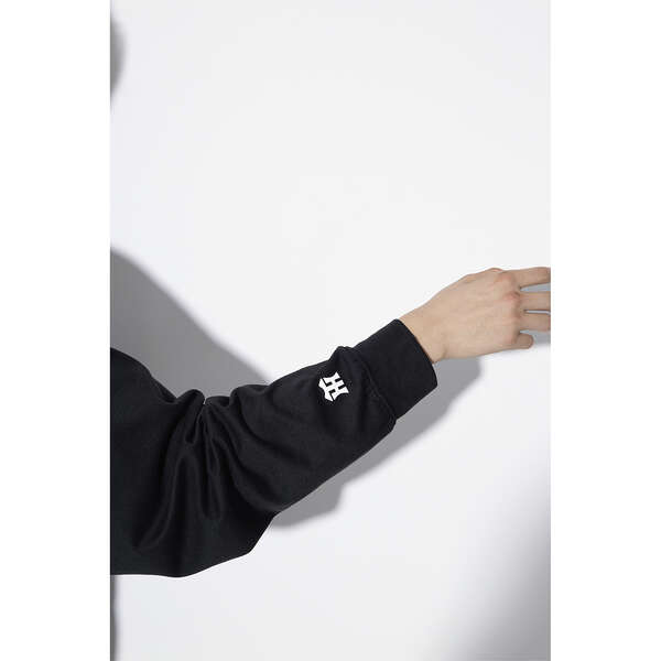 袖は大きめサイズで、手首をしっかり包んで保温性を保ちます。伸縮性のあるリブ仕様で、洗顔の時にサッとロールアップでき、袖が濡れる心配もありません。