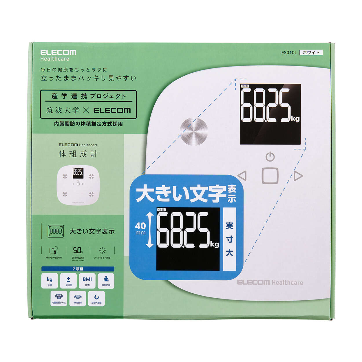 はっきり見やすい大きな文字表示で、毎日の健康をもっとラクに。MRI測定データに基づき、腹部全体の内臓脂肪を算出する体積推定方式を筑波大学と共同で開発し、より正確に内臓脂肪レベルの評価ができる体組成計です。50g単位の精密な測定ができ、内臓脂肪レベル・基礎代謝など7項目を測定可能です。※100kgを超えると100g単位となります。