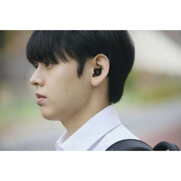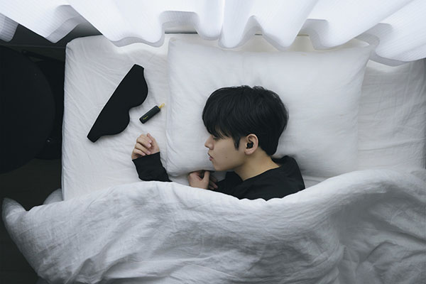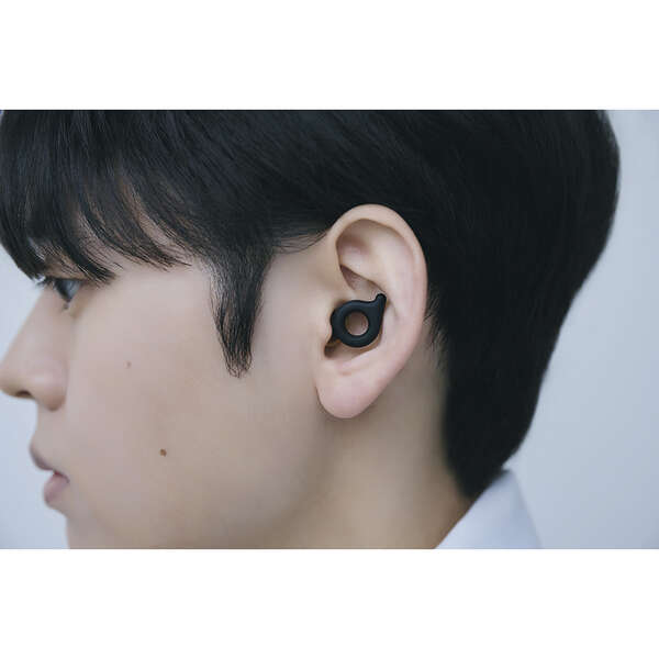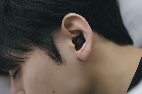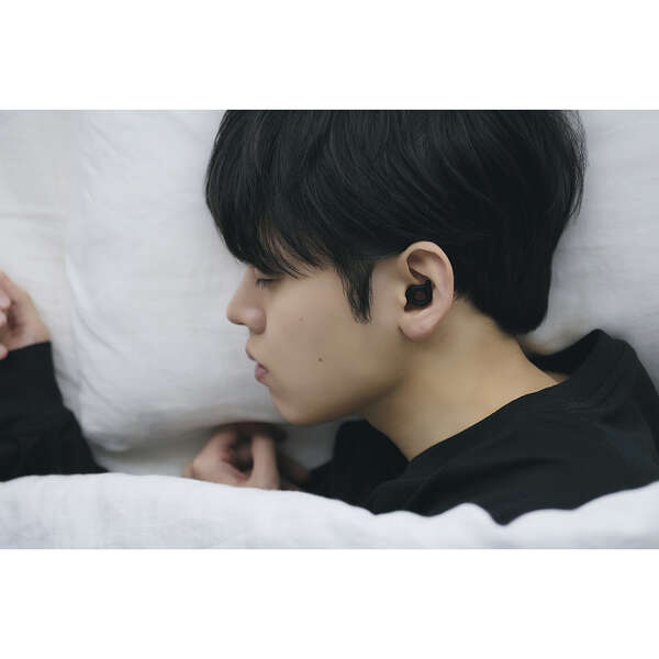 耳穴に収まる薄型設計。横向きで寝ても気にならず、自然なつけ心地です。