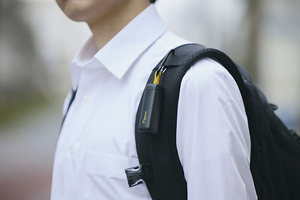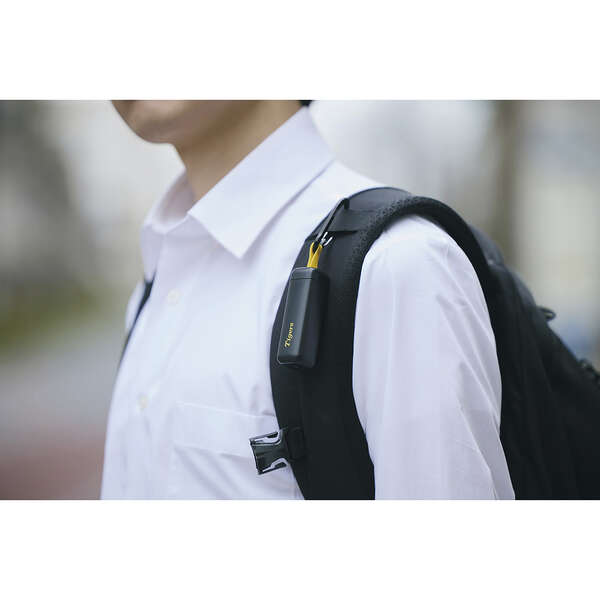 カラビナに取り付けられるループ付きで、バッグやベルトにも装着可能です。