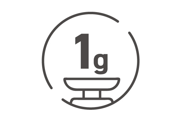 長時間の使用でも耳に負担がかかりにくい、約1gの軽量設計です。