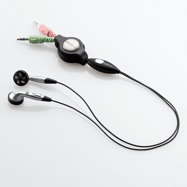 収納や持ち運びに便利な巻き取り式!気軽に装着できる両耳インナーイヤータイプのヘッドセット。