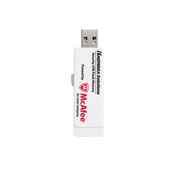 マカフィ社製ウイルスチェック機能搭載、パスワードロック機能、保存するデータ全てを強制的に暗号化するセキュリティUSBメモリ。