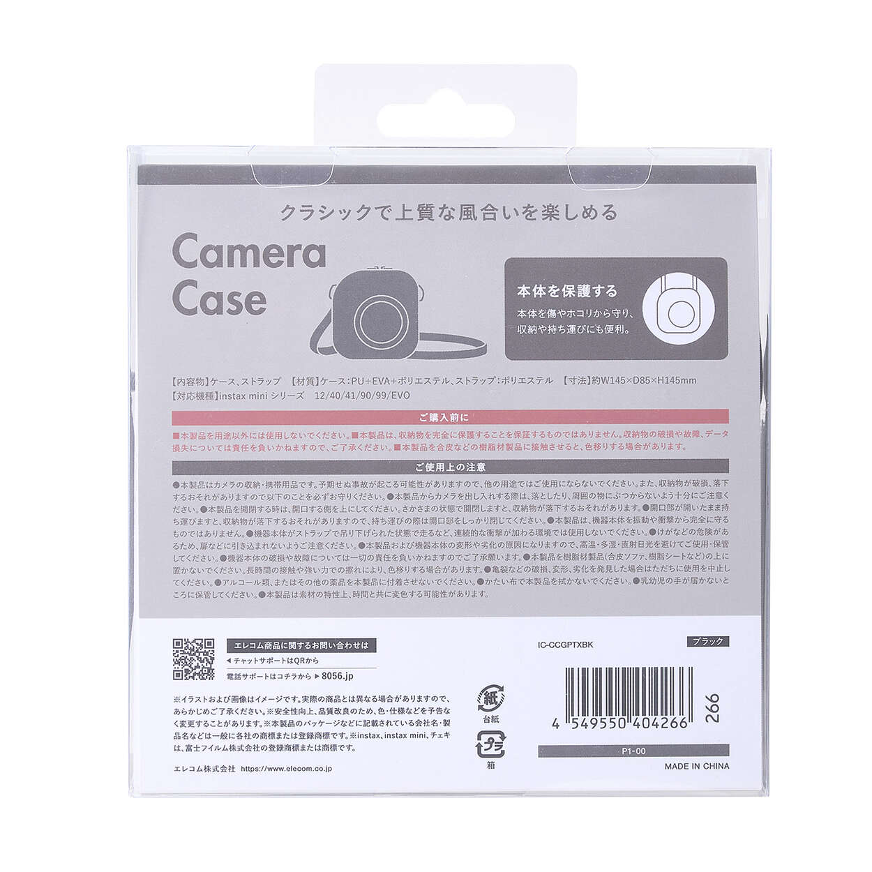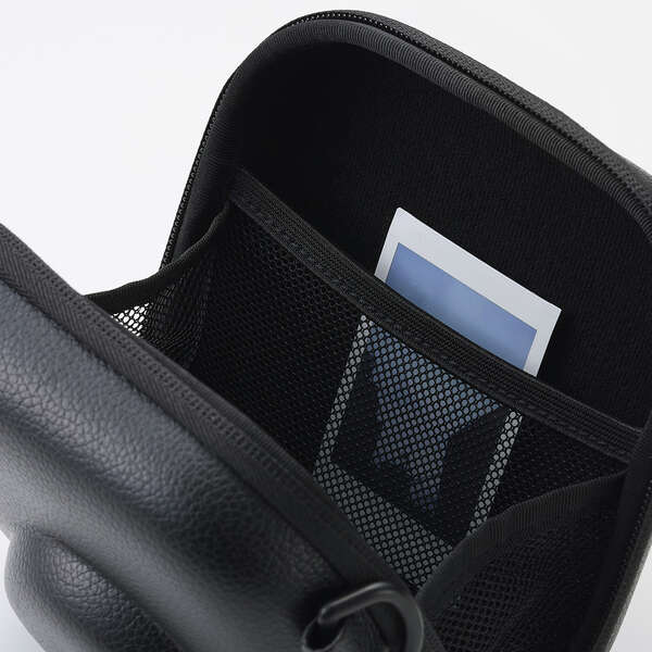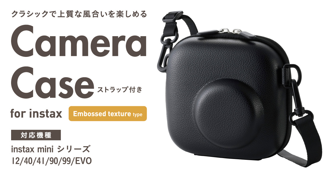 instax miniシリーズ(チェキ)を傷やホコリから守るカメラケースです。内側のポケットに撮った写真を収納できます。ストラップ付きで、日常使いはもちろん、旅行やイベントへの持ち運びにもおすすめです。クラシックで上質な風合いを楽しめるエンボステクスチャータイプです。