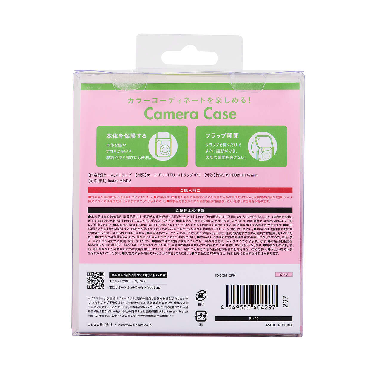 instax mini 12(チェキ)を収納できるカメラケースです。