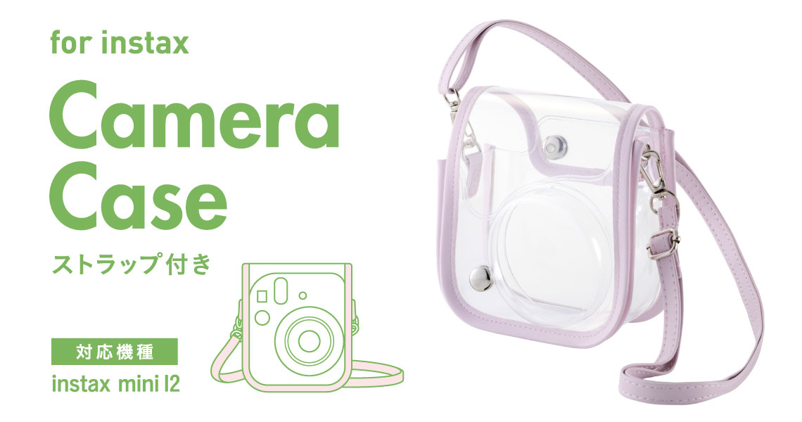 instax mini 12(チェキ)を傷やホコリから守るカメラケースです。ケースからカメラを取り出す手間なく、フラップをめくるだけですぐに撮影できるので、思い立った瞬間を逃しません。クリア素材で本体カラーを活かしたまま、チェキの可愛さを引き立てます。チェキの可愛さはそのままに、毎日の撮影をもっと楽しくします。