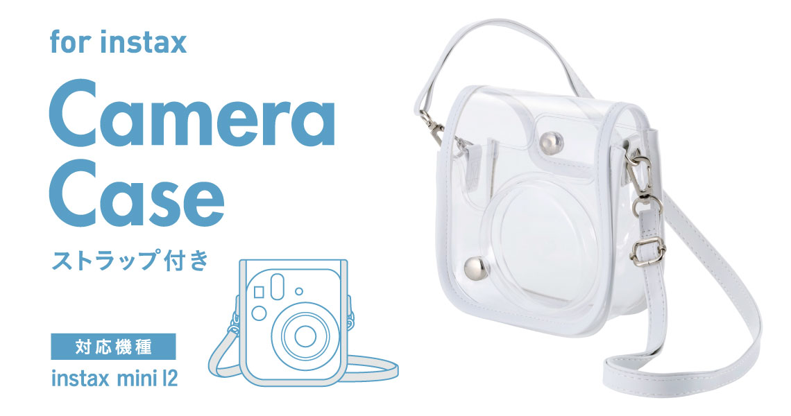 instax mini 12(チェキ)を傷やホコリから守るカメラケースです。ケースからカメラを取り出す手間なく、フラップをめくるだけですぐに撮影できるので、思い立った瞬間を逃しません。クリア素材で本体カラーを活かしたまま、チェキの可愛さを引き立てます。チェキの可愛さはそのままに、毎日の撮影をもっと楽しくします。