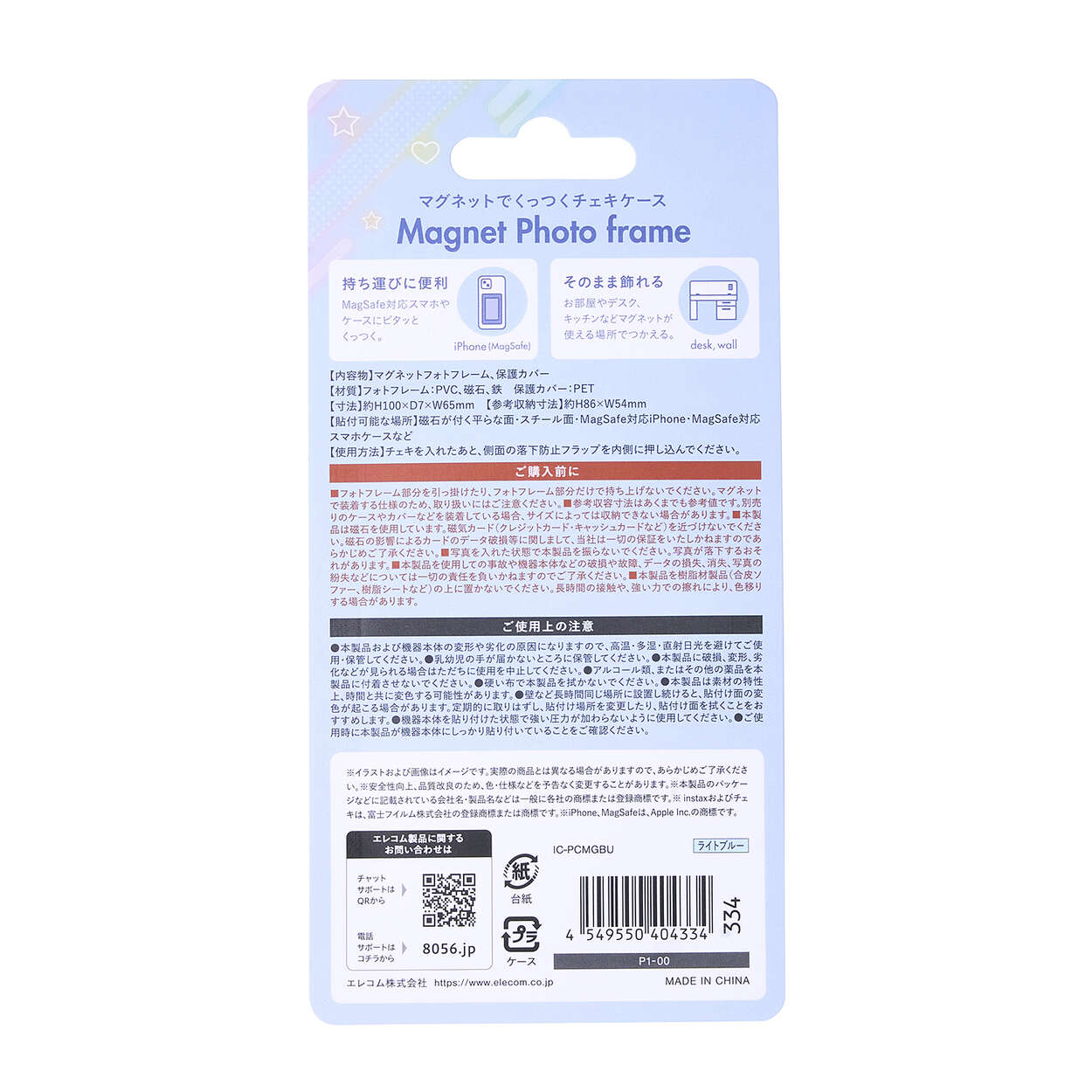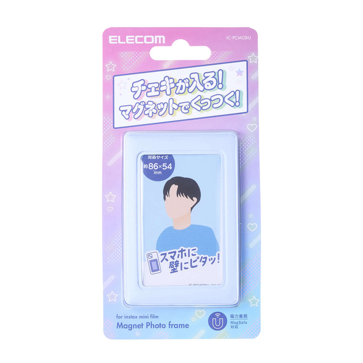 マグネット式だから、スマホケースや会社のデスク、家の冷蔵庫などいろんな場所に貼って楽しめます。着脱も簡単で、チェキを自由に飾れます。