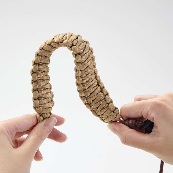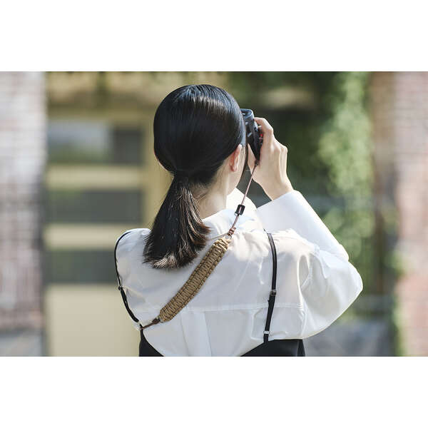 ロープ編みによる立体感が、日常のコーディネートにさりげない個性をプラス。シックな色合いでどんなカメラにも合わせやすいです。