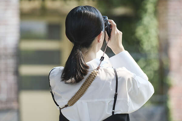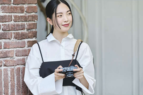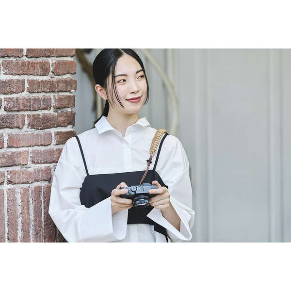 首掛け、肩掛け、たすき掛けの3WAYタイプ。シーンやスタイルに合わせて使い分けでき、両手が自由になるため、撮影や荷物の持ち運びに便利です。