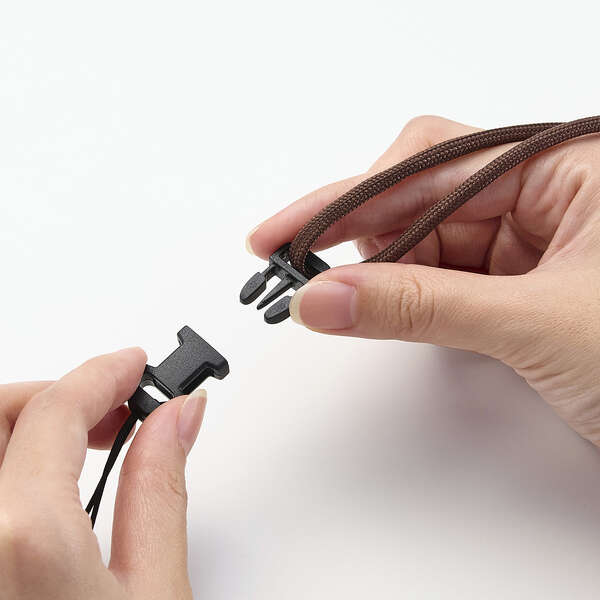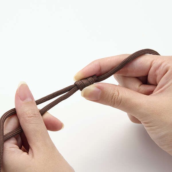 結び目を掴み、引っ張るだけでお好みの長さに調整できます。